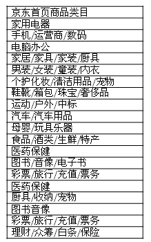 表4-7 京东首页类目