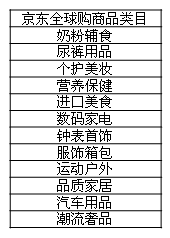 表4-8 京东次页:京东全球购商品类目