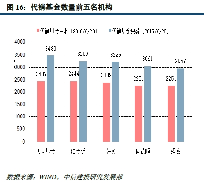 图6-14 代销基金数量前五名的机构