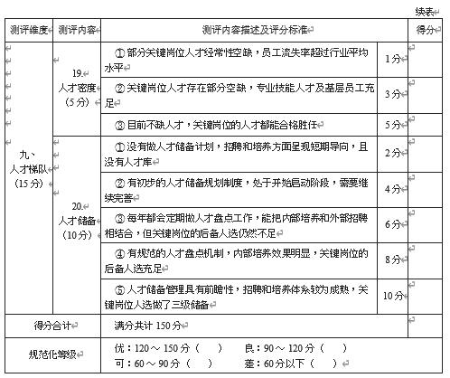 (2) 测评打分:将管理现状与测评标准进行对照,对每项内容按从低到高的顺序打分,分值为 1 ~ 10 之间的整数,不使用小数。