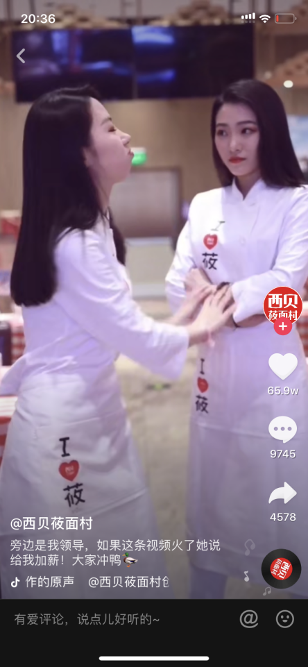 图5-21是西贝莜面村的一个视频。视频中两个跳舞的服务员舞蹈很普通,但是标题很好,“旁边是我领导,如果这条视频火了她说给我加薪!大家冲鸭”。结果点赞数突破11万。