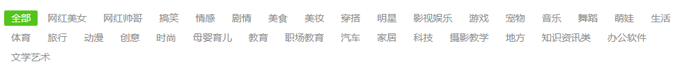 图5-22 抖音主要的垂直分类类目名称