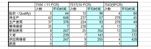 限制使用是日常维修小组工人将PCR板转为HOLD状态,到工程师开始大修或者送供应商翻修之间的时间,维修部门分为维修工程师组和日常维修组2个小组,维修工程师都是上周一至周五的白班,与生产线具体联系并不密切。因此在维修优先级上并没有考虑生产线的需求。