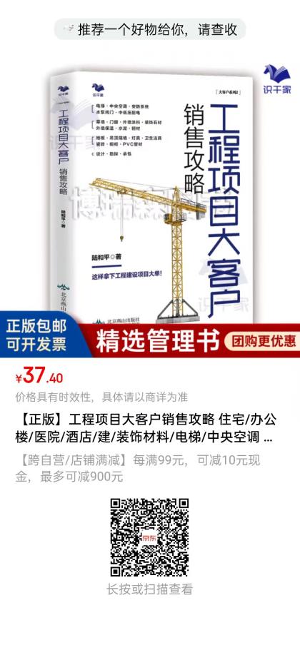 本书前七章是谋定而动——工程大项目销售拿单策略,第八、第九章是项目销售中的销售技巧——关系和沟通技巧。作者是名校土木工程系科班毕业,有十年设计院的工作经验,同时在全球*建材制造商和500强跨国公司有将近二十年的职业销售生涯,不但对建筑行业及相关建材和设备非常了解,而且积累了丰富的工程项目营销实战经验。