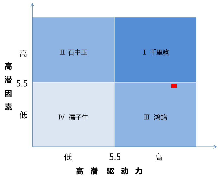 从潜质和意愿整体评估结果来看,张翔虽然高潜驱动力总评为8.2分,具有较强的发展意愿,但是高潜因素得分只有5.4分,处于III象限,因而在此次选拔中未能进入高潜人才池。
