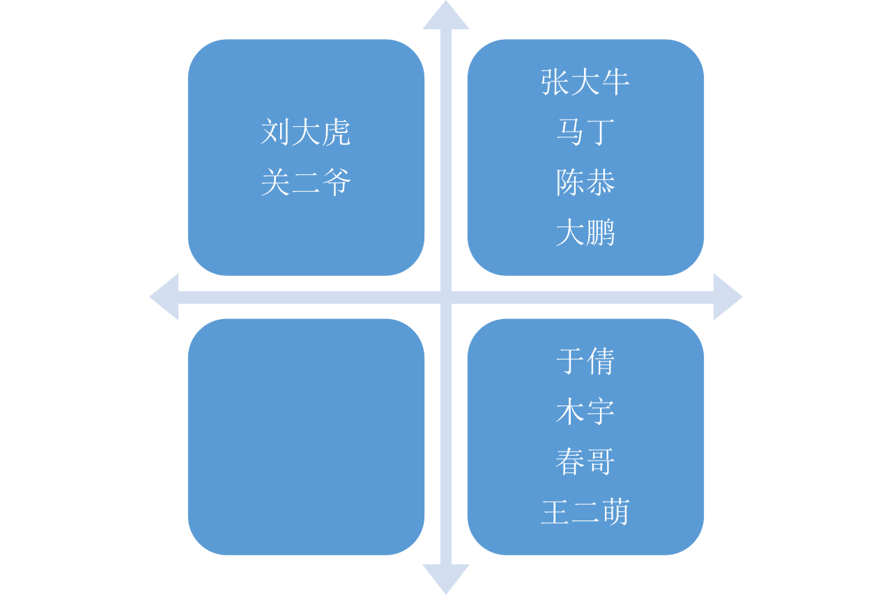 这个方法看起来最容易,所以我们将识别到的干系人依次放到这四象限里,得到图2-10。