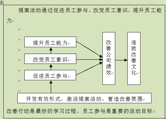 促进员工积极参与,提高员工积极性的最有效办法就是开展改善提案活动。因此,开展这项活动具有重要的现实意义。