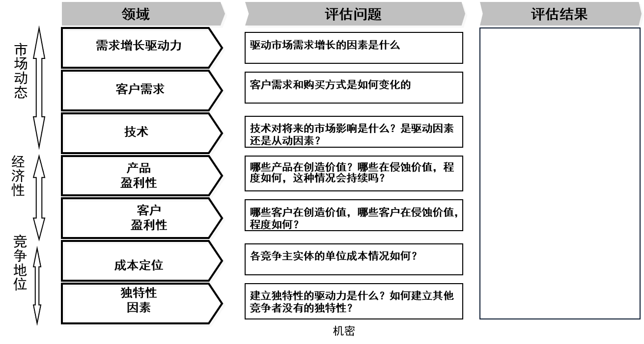 通过看趋势、看客户、看对手和看自己的分析,得出综合的结论框架,为战略方案设计奠定基础。