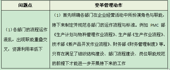 :对。变革前,各部门的流程运作混乱,职能重叠交叉。可能一个事情这个部门也能管那个部门也能管,资源利用率低下。另外,薪酬变革小组不明确。就是说原来公司推行薪酬福利改革,到底哪些人负责这个事,大家不确定。相关宣导不到位,员工也不了解薪酬改革的意义。因为一般在企业一讲到薪酬改革,或者工资改革,员工立马会很警惕,很敏感,他们马上会想:公司这是想干什么?