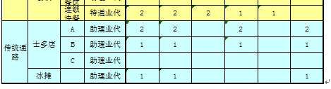 各通路拜访频率见下表。