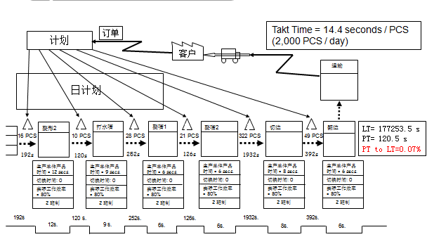 对金工生产线进行了工序级价值流分析,如图9-8所示。