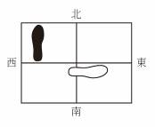 2.双手不动,右脚跟放于原来尚未旋转前的位置,脚跟点地,脚尖与身体一样朝向东方。