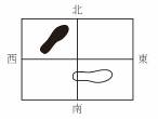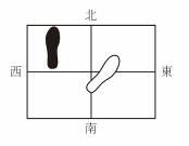 3.上半身保持不变,左脚向正北直线荡出一步,左脚跟点地,重心仍然在右脚,左脚成虚脚。