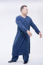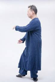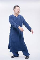 2.上半身维持不动,左脚涌泉向前踩出,重心逐渐移交给右脚,直到右脚全实、左脚全虚。