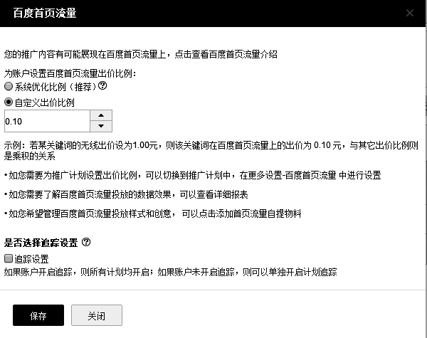 【百度首页流量】:就是前面提到的移动端信息流推广的百度首页推广。把它放在搜索推广账户里,没有取消选项,不想做移动端时,只能把价格系数调到最低。百度有许多捆绑销售的广告,还不能选择取消,只能选择把出价降到最低。如图3-20所示,最低只能是0.1倍。如果我买某个关键词的点击价格是5元,在移动端百度首页信息流广告上的出价只有0.5元。