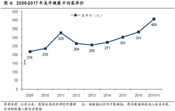 未来,美年健康的业绩就在于体检人数的增加和客单价的提升。公司预计2017年预计服务规模达到2000万人次、2019年目标4000万人次。如图6-20所示。