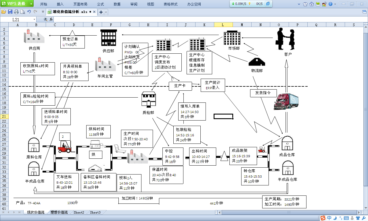 图5.22某化工企业TF-404A产品价值流程图(目标)