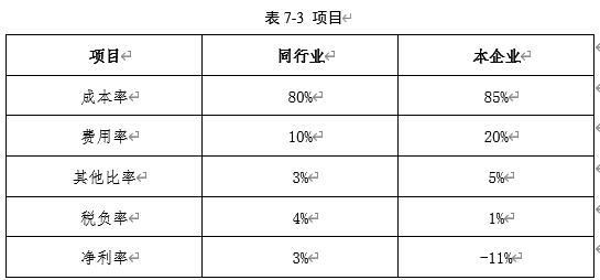 在疫情的情况下,该企业和同行业的净利率都在下滑,表7-3中的项目指占收入的比率。这家企业亏损原因是企业没有做结构规划,在实际运营中导致亏损。