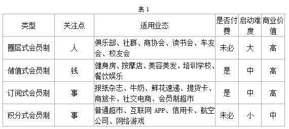 圈层式会员制、储值式会员制、订阅式会员制、积分式会员制