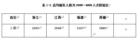 5.店均服务人数在4000人次的省区有2个(见表1-6)。