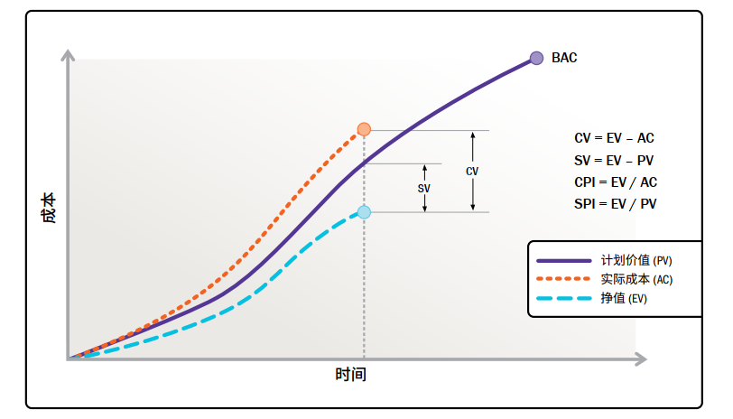 马丁说:“我知道你说的这套指标。这肯定是你最熟悉的指标,最常见的基准是成本和进度。大多数进度测量指标会根据以下相关的计划绩效来跟踪实际绩效的。”他拿出一张图,为陈恭讲解。