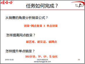 撒单补货——次强音。最强音订货会参与订货的都是批发商或者大一点的终端客户,那么那些小终端、小门店或者没有赶上机会的终端门店怎么办呢?那就是全体业务人员亲自拜访,再次补单,不放过任何修成正果的机会。先看看豫北市场的订货会案例: