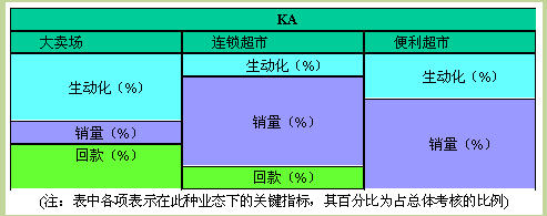 对KA渠道成员来说,生动化考核最重要,要将店面表现、常规堆头、特殊堆头,以及各项促销活动的检查内容和考核标准详尽地列在合同里。对KA渠道成员进行生动化考核和账款考核,和批发客户的销量考核区分开,尽量避免KA渠道与其他渠道的正面竞争。