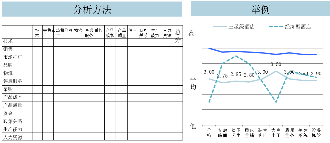 第一步,理解战略能力的起点是要理解哪些是客户看重的价值,也就是行业关键成功要素是什么(如图9-2所示)。不同行业的关键成功因素各不相同。关键成功因素是在竞争中取胜的关键环节,在提炼时不但要体现出行业的进入壁垒,而且要体现出客户看重的价值。关键成功因素可以通过判别矩阵的方法来定性识别行业关键成功要素;与关键成功因素相关联的一个概念是价值曲线,价值曲线的重塑通常可以创造价值蓝海。