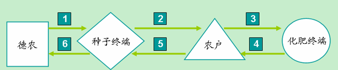 首先,德农公司将设计完成的售种卡(共四联)配送给种子终端,在农户购种时,德农种子终端告知农户,凭售种卡(给出四联)购买德农化肥可以抵扣部分种子款。有这种优惠政策,农户必然会到德农化肥终端了解情况,这便迅速提升了德农化肥的知名度。农户凭售种卡购买化肥后,化肥终端按销售量在售种卡(四联)上签字盖章,自己保留售种卡(留存联),并将售种卡(剩余三联)返还给农户,这样农户凭签字的售种卡可到种子终端兑现折扣款,抵扣款由种子终端先行垫付。结算期内,种子终端凭售种卡到德农结算,结算按政策进行。