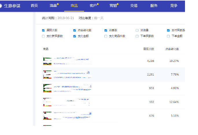 6)参考指标(单品点击率、转化率)。