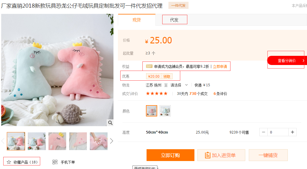 还有一个可圈可点的细节:商家在详情页里面做了很多营销,包括优惠券、分销系统、收藏加购,还有下面的商家热推等。如图11-19所示。