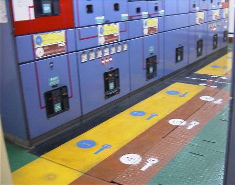 图2-11、图2-12为某公司发电机房画上点检通道之后的地面情况。