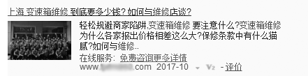 汽车维修行业的注意事项很多,但XFM长年做的是大客户(4S店和保险公司),早已养成了诚信的理念。与小的变速箱维修公司相比,服务团队齐备、信誉高、价格合理、流程规范,所以在网络营销的广告用语上,XFM充分替客户着想,敢于揭露行业黑幕,将原本是对手的客户也抢到了自己手中。看看他们现在的广告,这才是行业龙头企业应当做的事,如图8-10所示。