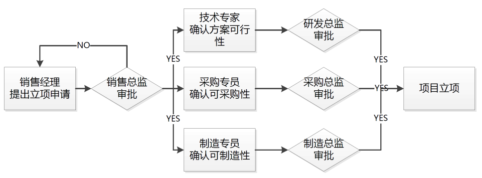 某公司在进行客户定制产品研发时,为了保证立项的权威性和可靠性,其审批流程示意图如图3-5所示。