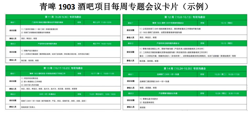 图7-93 青啤1903酒吧项目每周专题会议卡片(示例)