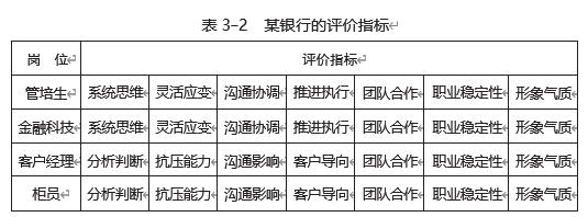 力等,还特别强调形象气质,这可能与银行业和客户接触频繁的特点有关。银行的评价指标,见表 3-2。