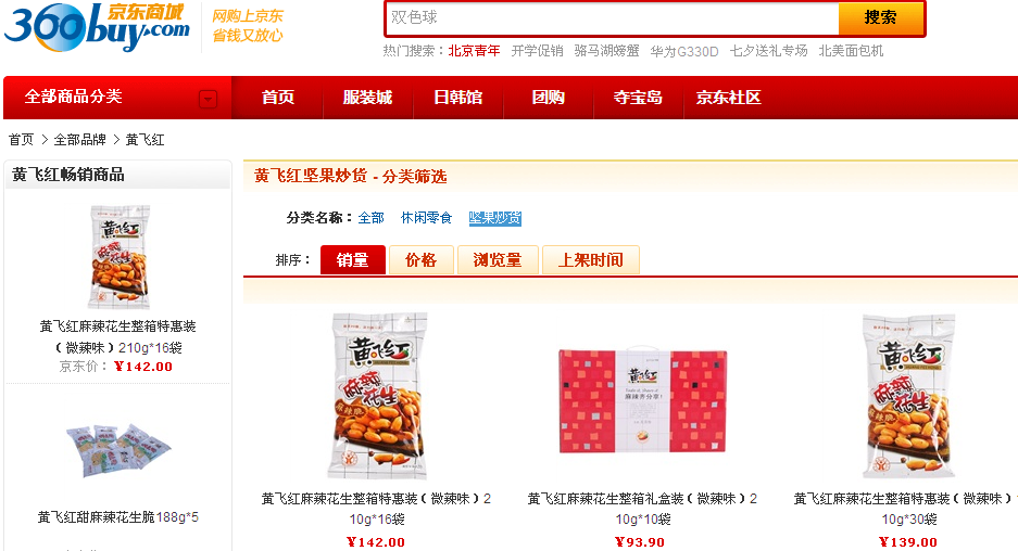 山东欣和与京东商城合作黄飞红牌麻辣花生。不仅产生了实际销量,而且通过电商渠道打响了知名度。如图4-3所示。