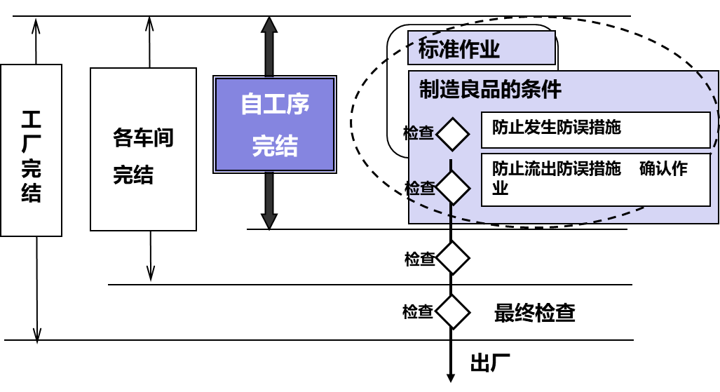 自工序完结的构成包含明确的良品条件和彻底遵守标准作业,作业者才能够清晰地判断自己作业的好坏。