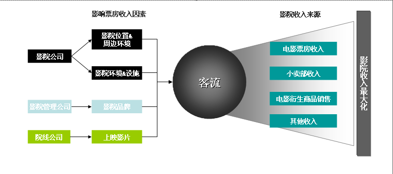 影院在运营的时候,影院和本购物中心里的电玩、餐厅、书店等其他的商家,进行营销互动和会员共享,提高人均消费水平。另外,在增加小卖部产品种类的基础上,还可以积极拓展增加杂志书籍、纪念品、海报、会议承接、专题讲座、艺术沙龙、储值卡利息、刺激二次消费的现金代用券;充分发挥网点优势,代售演唱会、音乐会、体育比赛票等多方面的非票房收入来源,从而提高非票房收入的整体水平。具体如图2-22所示。