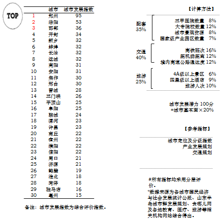 城市发展是城市的未来趋势,也是房地产发展迈向美好生活的主要路径。我们从城市配套、交通、旅游、规划等层面综合研判城市发展潜力。中原城市群城市发展指数TOP3的城市为:郑州、洛阳、邯郸。
