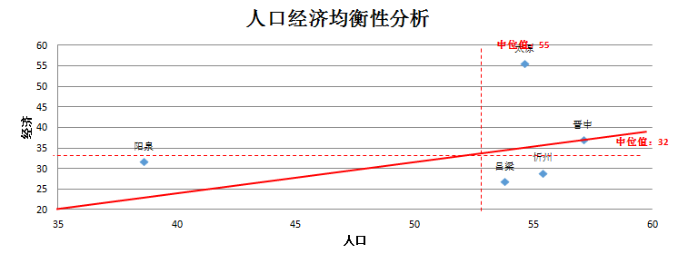 太原城市群人口与经济沿均衡线发展,均衡线以下且偏离越大的城市更应该关注产业发展,其中吕梁、忻州等城市要重点关注新产业进驻,有可能会带来城市发展的巨变;均衡线以上且偏离越大的城市更应该关注人口政策,其中太原、阳泉等城市要重点关注人口政策变化带来的人口集聚,有可能会带来人口短时膨胀。