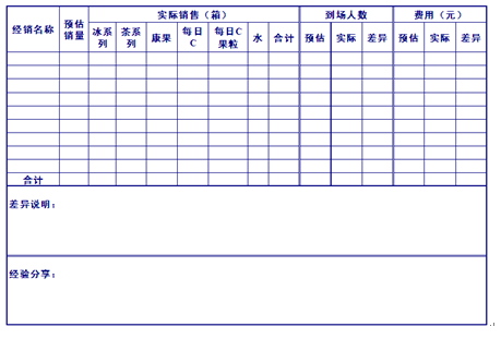 (2)统计表格(表8-8):汇总表格由营业专员填写,总经理根据汇总表掌握资源分配情况。