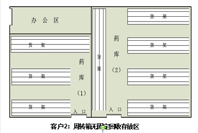 而另外一家医院,无周转箱存放地点,办公室在药库最里面,而且周转箱用于一级药库和二级药库周转,与客户沟通,药房无意在药库中腾出空间定置周转箱。后面经过与医院客户沟通,对无意使用周转箱的客户不再继续使用周转箱。如图12-4所示。