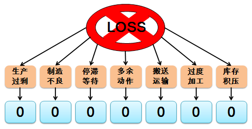 (5)浪费少:由于职场处在不断快速改善中,职场的管理水平、团队能力也会快速进步,而职场的规范化、标准化程度也会越来越高,如此班组内的七大浪费将会最小化(参见图4.30),班组也将取得卓越的工作绩效。
