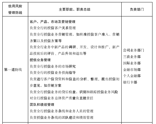 以渣打银行经典的“三道防线”设置为例,其各部分功能如下。