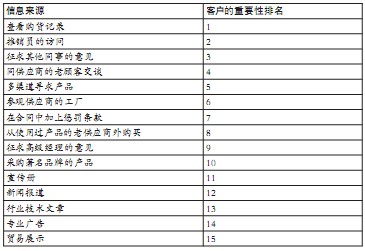 5.重要的信息来源。我们对工业品市场的客户进行过问卷调查和面谈研究,发现客户对产品采购信息的获得途径及信任程度有如下特点。如表2-8所示。