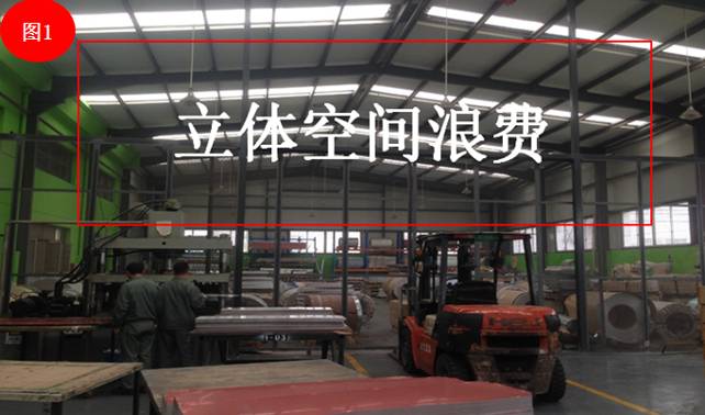 上图图1、图2是原料库,该原料库由于面积较小,产品堆放很密,直接把靠墙的原料挤在里面。如果要拿靠墙的原料,就要清理出一条路,这样每天得要多少工人去搬运,产生了浪费。