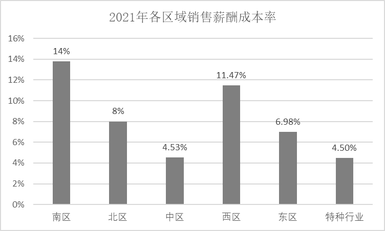 图16-8 不同销售区域销售薪酬成本率示例
