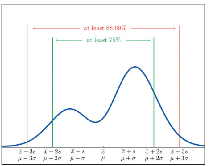 19世纪俄国数学家切比雪夫(Chebyshev)在研究统计规律中,论证并用标准差表达了一个不等式。这个不等式显示了随机变量的几乎所有值都会接近平均。