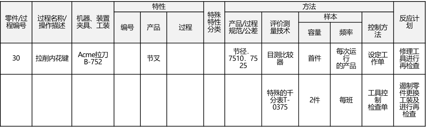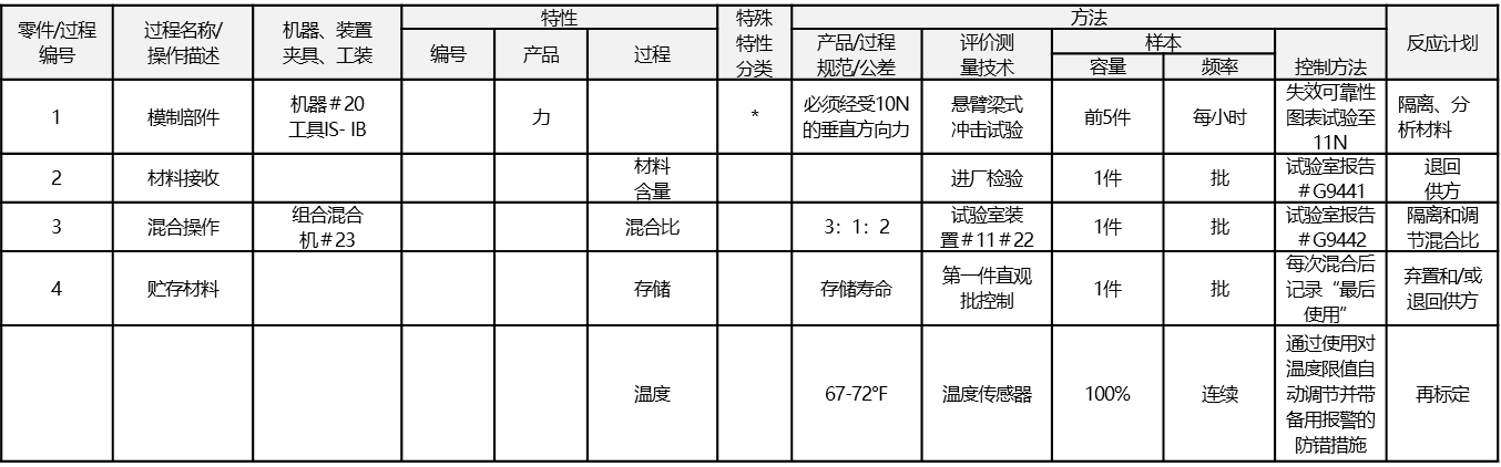 反应计划可包含但不限于遏制、调查、记录(好的和/或坏的事项)、调整、通知班组长、标识、隔离、返工/返修、报废、100%检验等。